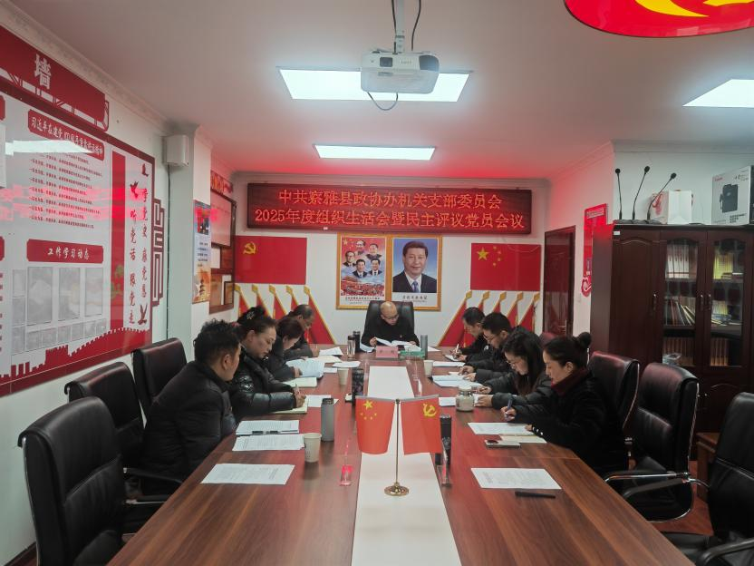 为深入学习贯彻习近平新时代中国特色社会主义思想,严格落实党内政治生活制度,巩固深化巡察整改成果,2026年1月26日下午,察雅县政协办机关党支部召开2025年度组织生活会暨民主评议党员会议。会议由县政协办机关党支部书记、主任罗超主持,县政协党组成员、副主席郑功伟,县政协副主席廖小彬出席指导,县纪委、县委组织部到会指导同志全程督导,党支部在岗党员参加会议,“两代表一委员”列席会议。