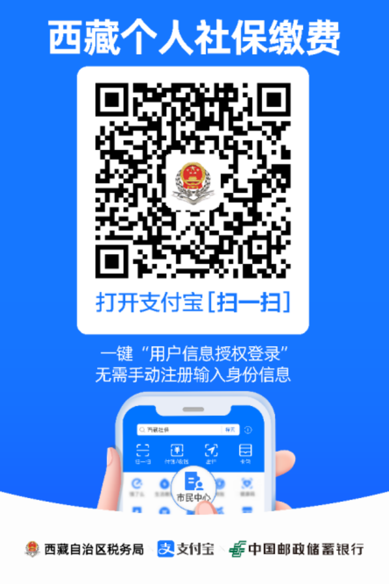 3.“支付宝”缴费渠道:打开“支付宝”APP进入主页面,如果您在区外,请先定位至“拉萨”或西藏自治区任何一个城市后:一是可以点击主页面“市民中心”选择“社保”功能进入下一页,选择“社保缴费”下的“西藏社保缴费”功能进入“我要缴费”界面;二是也可以通过“支付宝”APP首页搜索“西藏税务或西藏税务社保缴费”,选择“西藏税务社保缴费”小程序进入“我要缴费”界面。点击“我要缴费”—如果给本人缴费,则直接点击“下一步”,如果帮他人缴费,请点击“他人”,输入缴费人姓名和身份证件号码核实无误后,点击“下一步”—选择“城乡居民基本医疗保险费”险种,点击“下一步”进入核对参保信息界面,选择缴费档次,确认无误后点击“提交”进入“确认缴费”界面,再次核实无误后点击“确认缴费”,输入支付密码,完成缴费。