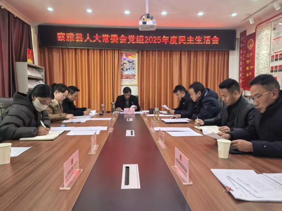 会上传达学习了习近平总书记在中共中央政治局民主生活会上的重要讲话精神,通报人大常委会党组上一年度有关专题民主生活会整改措施落实情况及察雅县人大常委会党组2025年度民主生活会会前准备情况。江勇泽培主任代表县人大常委会党组作对照检查,并带头作个人对照检查发言,其它班子成员依次作对照检查,严肃认真开展批评与自我批评,大家敞开心扉深入交流,检视问题不遮掩,剖析问题不回避,实事求是提出整改措施。