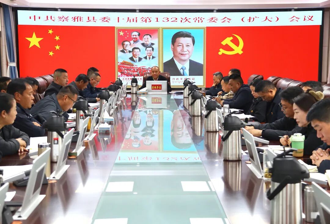 4月14日,县委书记其珠多吉主持召开县委十届第132次常委会(扩大)会议,传达学习习近平总书记近期重要讲话、贺信精神,传达学习中央和自治区、市相关会议、文件精神,传达学习王君正书记、庄劲松书记近期有关讲话精神,听取树立和践行正确政绩观学习教育、巡察整改评估、安全生产工作汇报,研究部署近期重点工作。