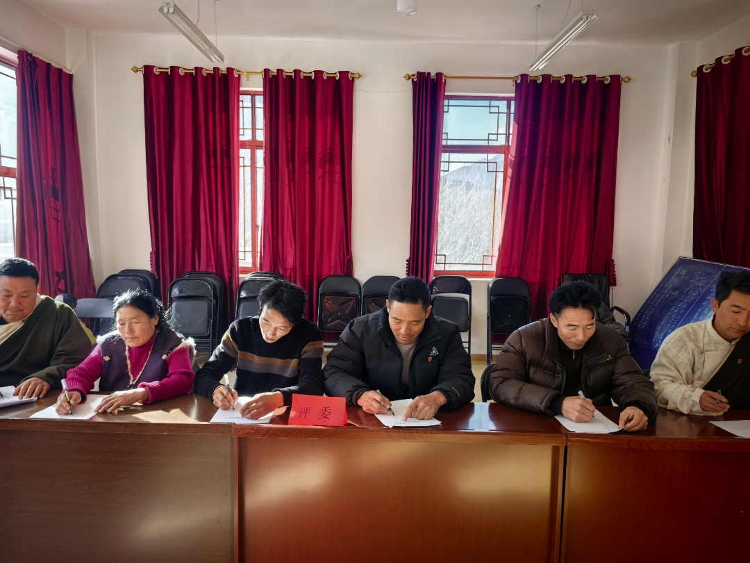 以赛促学,点燃语言文化“新引擎”。聚焦铸牢中华民族共同体意识,各村社相继举办了理论政策宣讲、国家通用语言文字演讲和书写、讲故事等比赛。赛场上,参赛选手坐姿端正、认真书写,用标准的普通话、工整的汉字,深情宣讲党的创新理论,抒发着对党和祖国的热爱,讲述着家乡翻天覆地的变化。荣周乡姆巴村利用积分超市为获奖选手发放实用生活用品,极大地激发了群众的学习热情,营造了“比学赶超”的浓厚氛围,进一步促进了各民族交往交流交融。