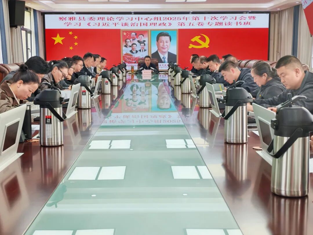 察雅县人大常委会党组理论学习中心组召开2025年度第十次学习会暨《习近平谈治国理政》第五卷专题读书班会议10月24日,察雅县人大常委会党组理论学习中心组召开2025年度第十次学习会暨《习近平谈治国理政》第五卷专题读书班会议。会议由县委常委、人大党组书记、主任江勇泽培主持并作总结讲话,专题学习《习近平谈治国理政》第五卷,传达学习习近平总书记重要讲话精神、王君正书记讲话精神、庄劲松书记讲话精神...